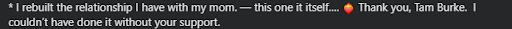 ⚡“After the work I did with Tam, every single day has become a choice to put me first, and because of this, life has become abundant in ways I didn’t know were possible. I no longer shy away from things that once scared me, and I no longer hang out in a place of self-pity when the going gets tough. New opportunities and new relationships have come to me with ease and abundance since shifting my life in this new direction. I didn’t know I needed this sense of redirection, but I am so thankful for it.” -Kate,